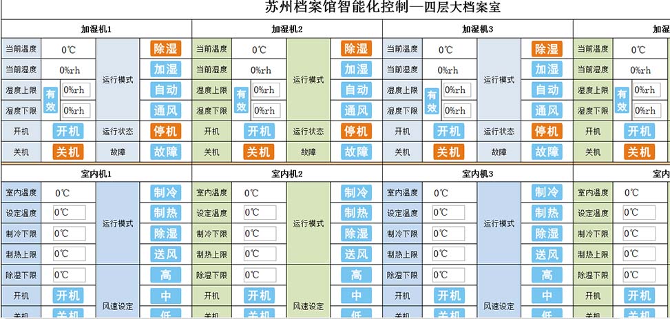 溫濕度控制:通過對大樓的溫濕度進行采集,控制加濕器、空調、新風進行溫濕度控制,可以實現恒溫恒濕的精密環境控制;