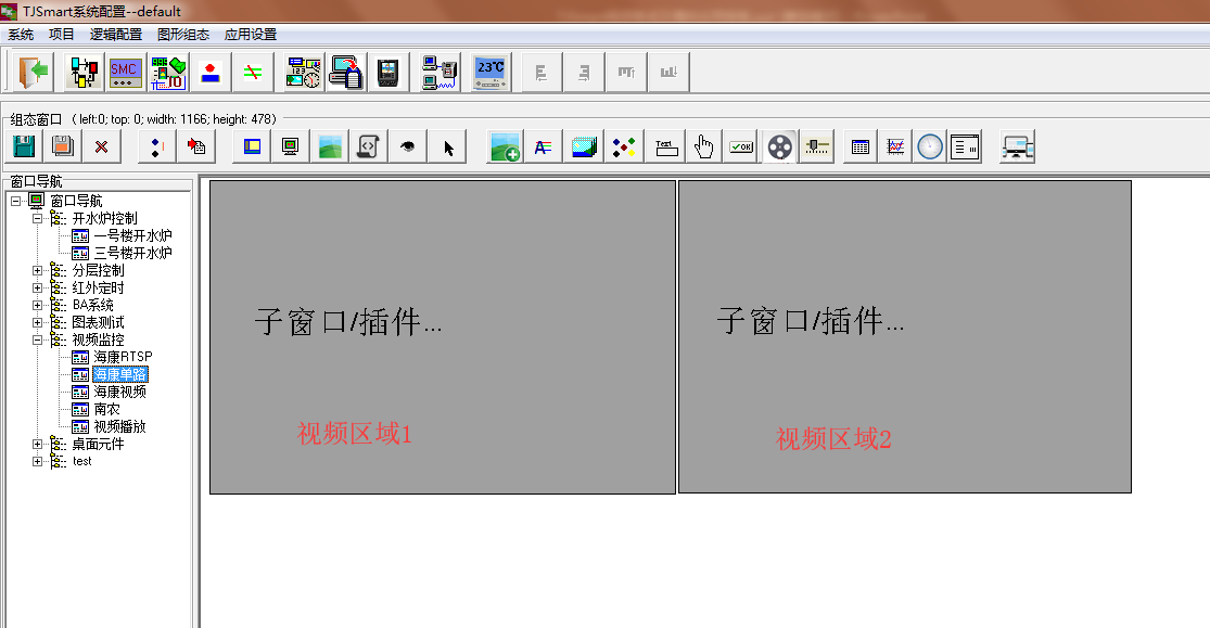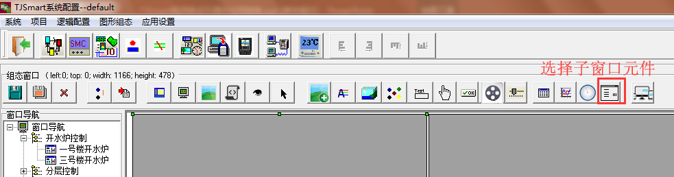 創建需要進行視頻集成的窗口后,在工具欄上選擇子窗口元件,然后對子窗口元件進行設置。
